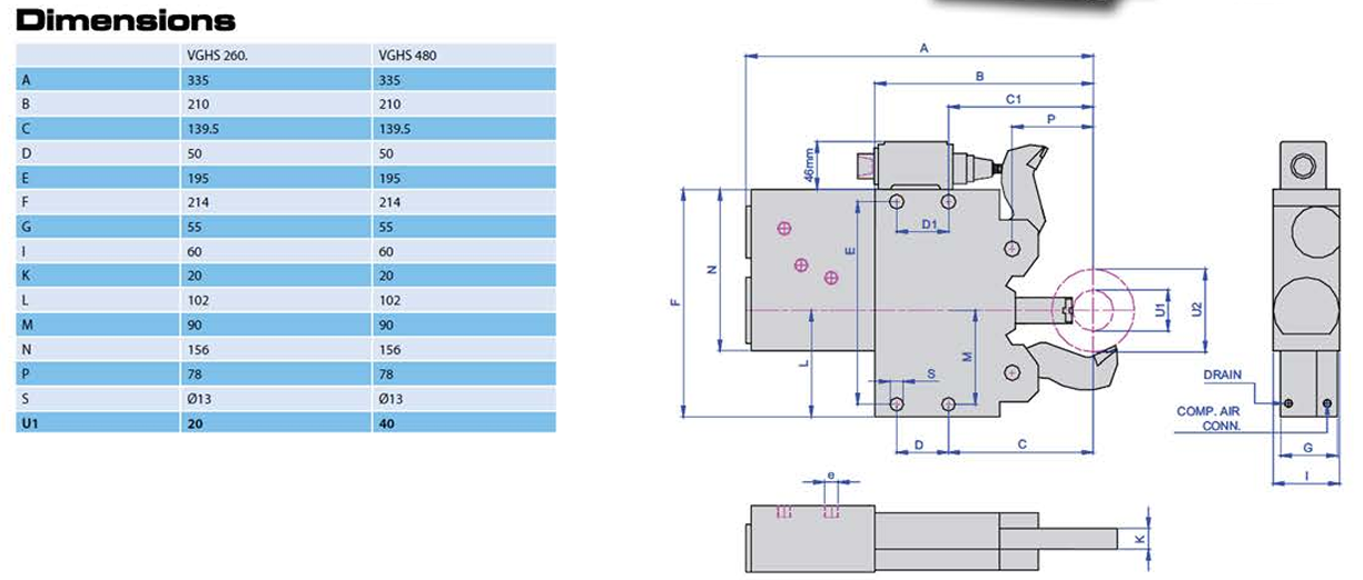 Kitagawa VGHS 260 boyutları için tıklayınız.