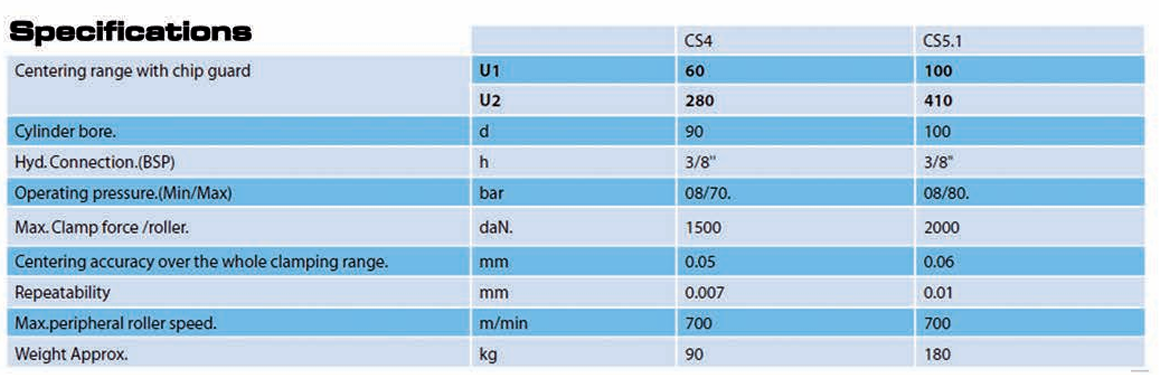 Talaş korumalı merkezleme aralıkları: 100-410 mm