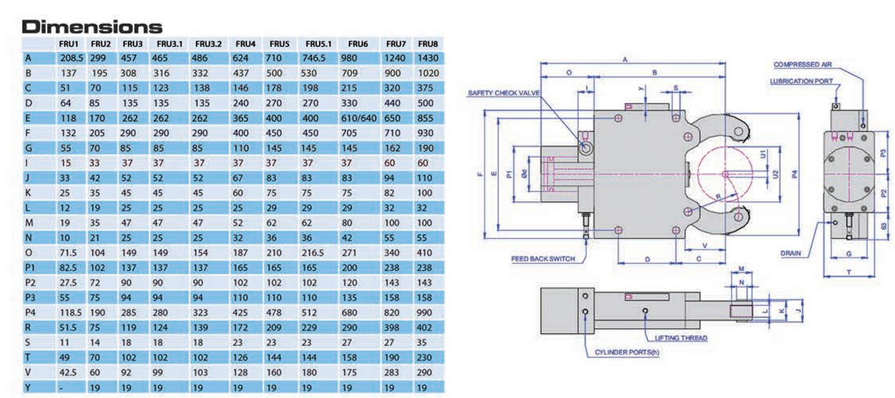 Kitagawa FRU 5 boyutları için tıklayınız.