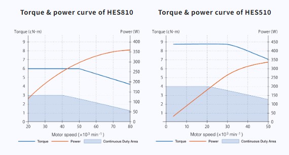 80.000 dak -1 veya 50.000 dak -1 motor hızlarına sahip iki tip motor mili mevcuttur .