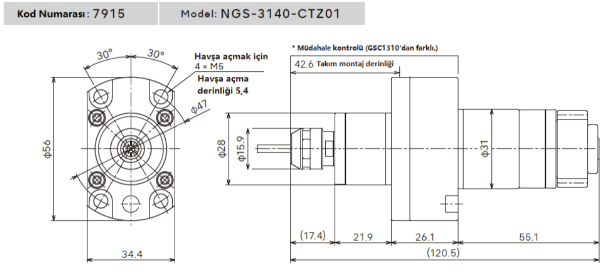CNC otomatik tornalarda standart döner takımların yerine kullanılabilen, yüksek hızlı ve kolay monte edilebilir dişli spindle